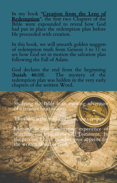 In my book " Creation from the Lens of Redemption", the first two Chapters of the Bible were expounded to reveal how God had put in place the redemption plan before He proceeded with creation. In this book, we will unearth golden nuggets of redemption truth from Genesis 3 to 11 to see how God set in motion the salvation plan following the Fall of Adam.
